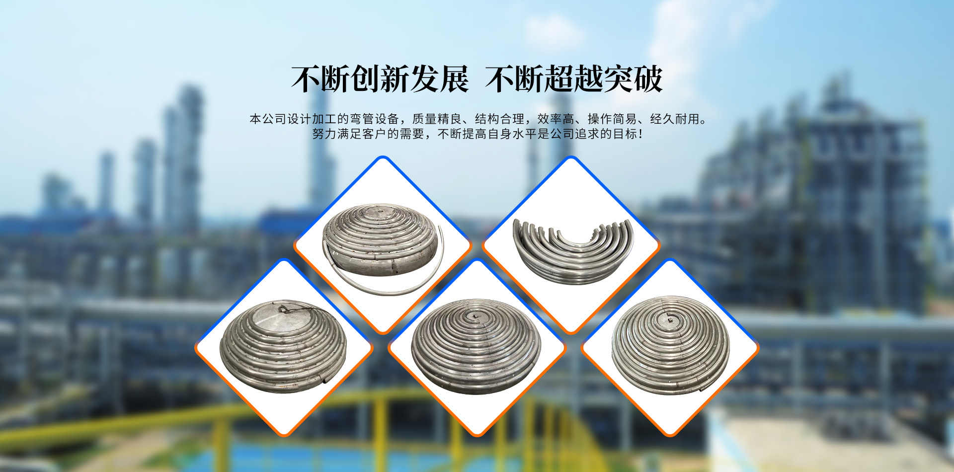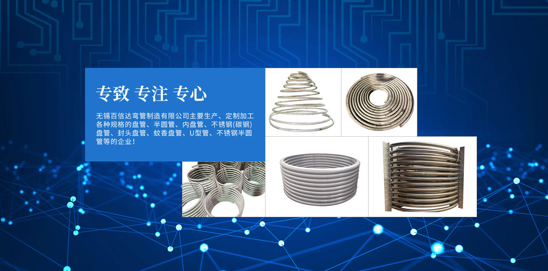 無錫百信達(dá)彎管制造有限公司位于經(jīng)濟(jì)發(fā)達(dá)、風(fēng)景秀麗的太湖之濱。本公司擁有完整、科學(xué)的質(zhì)量管理體系,公司的誠信、實力和產(chǎn)品質(zhì)量獲得業(yè)界的認(rèn)可。公司專注生產(chǎn)、定制加工各種規(guī)格的盤管、半圓管、內(nèi)盤管、不銹鋼盤管、封頭盤管、蚊香盤管、U型管、不銹鋼半圓管、碳鋼盤管等的企業(yè)。本公司設(shè)計加工的彎管設(shè)備,質(zhì)量精良、結(jié)構(gòu)合理,效率高、操作簡易、經(jīng)久耐用。公司已經(jīng)承接了各地多個大型場館工程項目的彎管加工,屢次得到了多家大客戶的好評。努力滿足客戶的需要,不斷提高自身水平是公司追求的目標(biāo)。歡迎社會各界朋友蒞臨無錫百信達(dá)彎管制造有限公司參觀、指導(dǎo)和業(yè)務(wù)洽談!